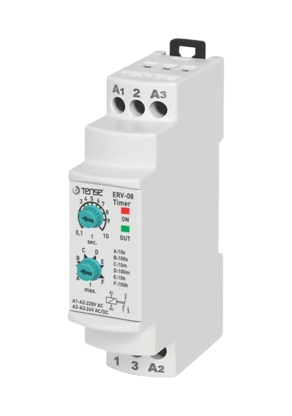Multifonksiyonlu Zaman Rölesi – ERV-08 0,1 saniyeden 100 saate kadar ayarlanabilen, çok fonksiyonlu bir zaman rölesidir. 12–260 V AC/DC besleme seçenekleriyle çalışır, motor kontrolü, flaşör, otomatik geçiş ve aydınlatma sistemlerinde kullanılır. Kompakt yapısı ve LED göstergeleri ile kolay takip sağlar.